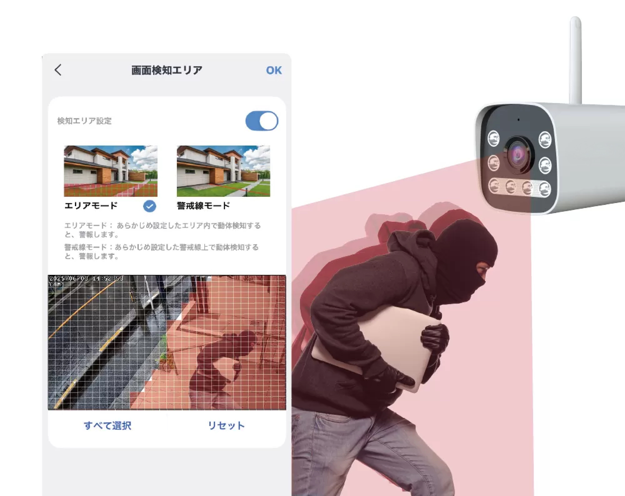 動体検知でカラー映像に自動で切り替わり、鮮明な映像を残せます。
